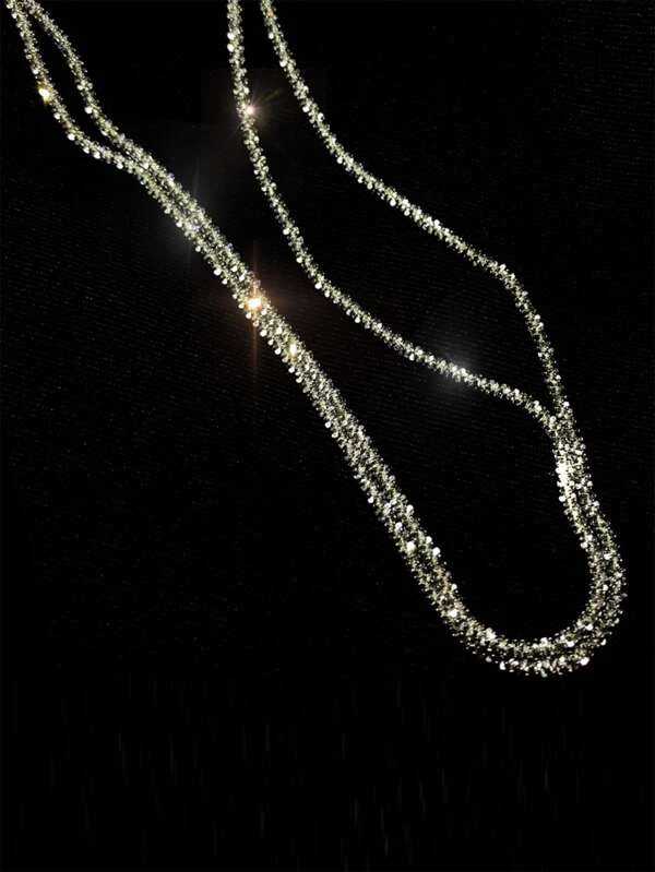 Colar prata em camadas Decoração de strass